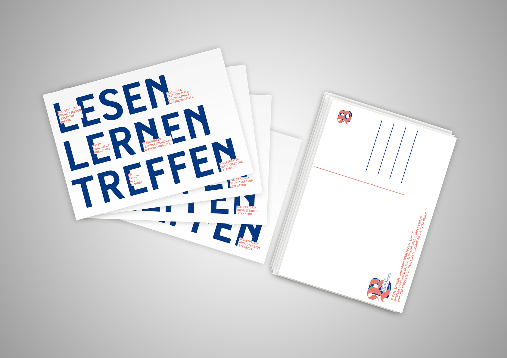 Die Bezirksbibliotheken in Berlin haben alle ein unterschiedliches Erscheinungsbild und Auftreten. Wie könnte man also alle dreizehn Bibliotheken sowohl einheitlich als auch unterschiedlich darstellen?